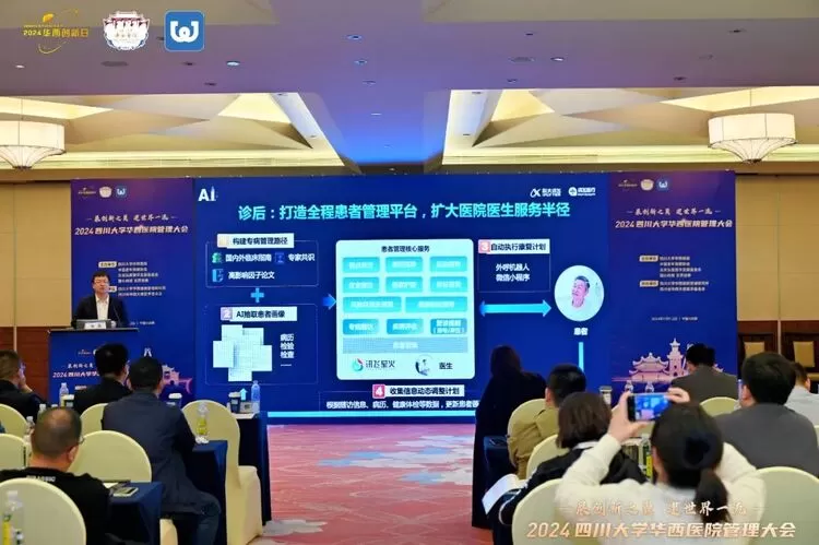 在“医疗改革与医院管理创新前沿”主论坛上,四川大学华西医院院长罗凤鸣围绕“以健康为中心,创新医疗服务模式,加快推动华西高质量发展”主题,介绍了医院与讯飞医疗等人工智能企业携手合作,不断拓宽AI大模型的应用场景,从导诊导医、报告解读到用药指导等,为患者提供更加便捷、高效的医疗服务。
