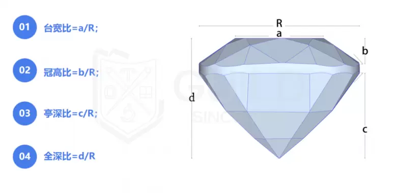 比例:比例指的是宝石上各个刻面的相对排列。合适的比例对于最大化宝石与光线的互动至关重要。比例会直接影响光线如何进入和离开宝石,进而影响宝石的亮度、火彩(光线分解成彩虹色)以及颜色的饱和度。比例不当会导致光线从宝石中泄漏,从而降低亮度和颜色的鲜艳度。