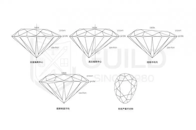 GUILD宝石切工分级体系将切工依次分为:差(Poor)、一般(Fair)、好(Good)、非常好(Very Good)、极好(Excellent)。
