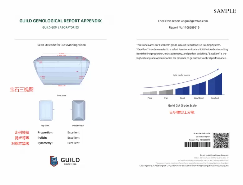 2024年10月,GUILD宝石实验室正式发布彩色宝石切工报告,进一步将切工作为一个单独的项目评级,从宝石的对称性、比例和抛光三个方面定量分析和评价宝石的切工。