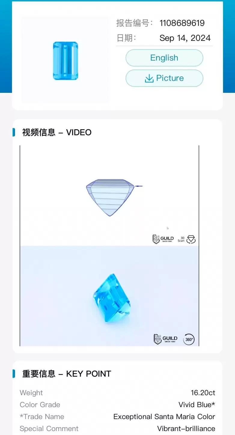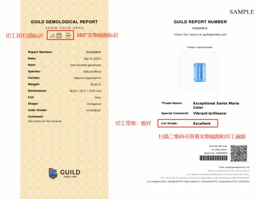 GUILD报告将3D扫描切工视频、宝石360度全景视频与传统纸质报告相结合,让客户不仅能够通过视频全面了解宝石的各个细节,还能通过纸质报告获得准确的数据支持。这种线上与线下的双重展示方式为客户提供了更加直观、全面的宝石体验。