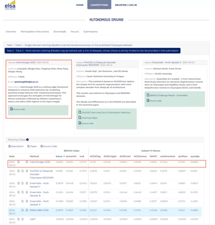 不久前,2024计算机视觉领域的顶级学术会议ECCV在全球目光注视中顺利落幕,ECCV的全称是European Conference on Computer Vision(欧洲计算机视觉国际会议),是两年一度的全球计算机视觉领域与模式识别领域最顶尖的学术会议。其与CVPR(IEEE/CVF Computer Vision and Pattern Recognition Conference)、ICCV(IEEE/CVF International Conference on Computer Vision)一起并称为计算机视觉领域的三大最高级别的顶级会议。本次会议上,备受关注的开放世界鲁棒语义分割挑战赛BRAVO 2024 (a unified Benchmark for Robustness in Autonomous Vehicles in the Open-world,简称BRAVO)也在同期结束了“巅峰对决”,在本次比赛中,中科视语AI团队以62.6的出色成绩,从全球17个国家和地区,百余支顶尖AI团队中脱颖而出,摘下桂冠。这也是中科视语在2024年登顶工业异常检测挑战赛桂冠后,面向图像语义分割技术的又一次实力展示。