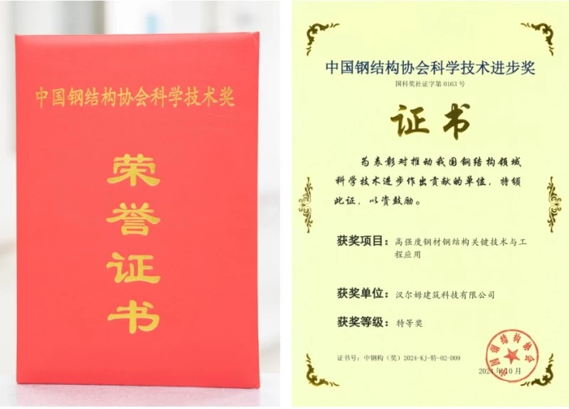 省部级奖项+1|汉尔姆荣获“中国钢结构协会科学技术进步奖特等奖”