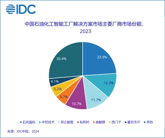 近日,国际数据公司(IDC)发布了《中国石油化工智能工厂解决方案市场份额,2023》报告。石化盈科以市场的主力技术与服务供应商身份入选该报告,并以23.9%(近总市场1/4)的市场份额位居第一。