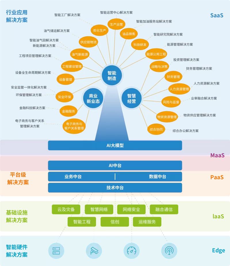 石化盈科聚焦企业数字化转型需求,以新基础设施、智能硬件为“树根”,以智慧经营、智能制造、商业新业态为“树干”,以各业务域/业务子域为“树枝”,以解决方案为“树叶”,打造了覆盖全产业链、分级分类的解决方案体系,涵盖战略与决策管理、风险与监督管理、财务管理、人力资源管理、物资供应管理、综合协同管理、生产营运、安全环保、能源及公用工程、设备管理、供应链物流、工程管理、科技研发管理、油气新能源、炼油化工、油品销售、电子商务与客户关系管理、金融服务、信息和数字化管理等19个业务域、200余项行业解决方案和平台级解决方案。