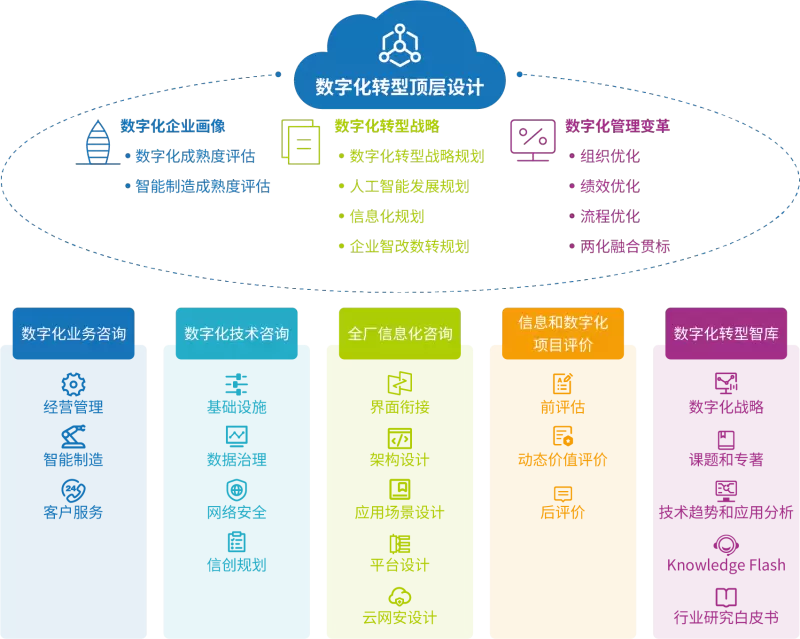 石化盈科认为,顶层设计能够帮助企业将长远愿景转化为实施路径,从全局角度统筹规划各方面、各层次、各要素资源,可以高效实现企业转型升级目标。石化盈科持续向专业化纵深发力,借助数字技术驱动业务变革,明确企业各业务域能力提升方向,优化管理流程、运营模式,可为企业提供人工智能规划、信息化发展规划、流程标准化、数字化业务咨询、数字化技术咨询、全厂信息化咨询、信息和数字化项目评价和智库服务。通过专项规划落实业务战略和数字化转型战略,与整体层面形成一体化的战略支撑;数字化业务咨询涵盖企业的经营管理、智能制造、客户服务等多个方面,加快企业转型升级步伐;数字化技术咨询以新一代数字技术赋能业务发展,打通IT与OT,以工业大数据为血液,消除断点、堵点,加速业务与应用的融合,提升用户体验;全厂信息化咨询涵盖架构设计、场景设计、平台设计、云网安设计等,遵循“数据+平台+应用”的信息化建设理念,为企业智能工厂建设和改造提升打下良好基础;数字化转型智库聚焦前沿趋势研究,联合行业顶级咨询机构,跟踪能源化工行业发展,打造包括行业前沿资讯、技术趋势预测、数字化战略期刊及白皮书等构成的智库体系。