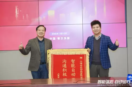 在主旨演讲环节结束之后,易高煤化为了肯定全应科技在其热电机组智能化升级项目中所作出的突出贡献,特意赠送一面锦旗,以示肯定与鼓励。这面锦旗不仅是对双方合作成果的一种肯定,更是对双方在推动热电行业智能化发展道路上所付出努力的认可。
