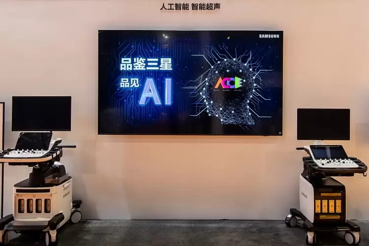 此外,三星展出的全能旗舰产品RS9,是三星医疗目前新一代高端智能超声,融合了三星公司在AI和5D智能诊断的先进技术,综合腹部、心脏等各临床领域科的领先技术,着力打造的更为综合、更为均衡的高端全身应用型智能超声诊断系统。