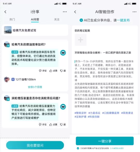 值此七周年之际,悠族驾到特别推出了全新的AI智能创作服务——“iShare”,致力于为用户们提供更广阔的表达空间。作为云捷亮数智能化创新的一部分,iShare不仅是悠族驾到与用户之间的沟通桥梁,更是社区互动体验的一次升级。借助iShare,用户可以通过AI生成富有个性化的文字表达,将他们对汽车的热爱、对悠族驾到的深厚情感化作可分享的内容,记录生活点滴、畅谈未来愿景。