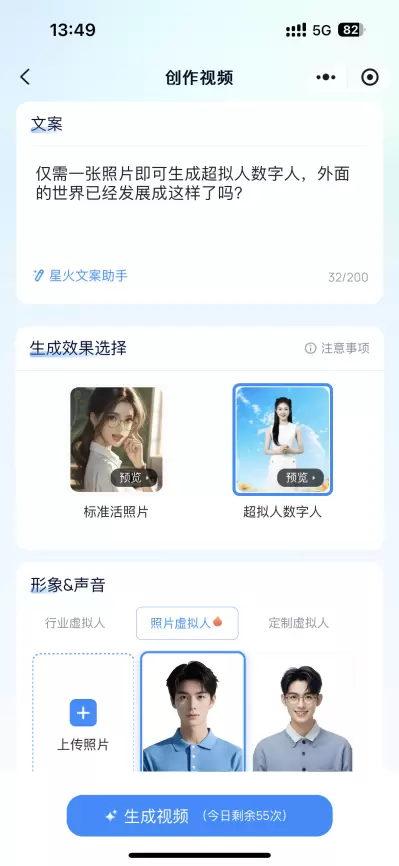 讯飞智作首发超拟人数字人,一张照片可快速创建你的专属数字人