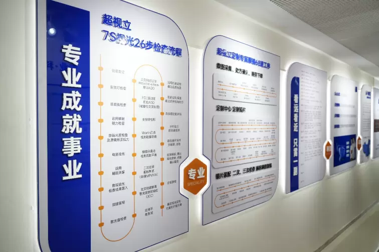 每一副超视立渐变焦远近一体镜的诞生均需历经68道精细工序,耗时约15天方能呈现于顾客面前。首先专业验光团队运用专业设备,通过7S视光26步检查流程,精准、全面捕捉并分析顾客的视力状况。再结合顾客的用眼习惯、生活方式及个性气质,为顾客一对一打造专属配镜方案,然后才交由工厂精心制作。