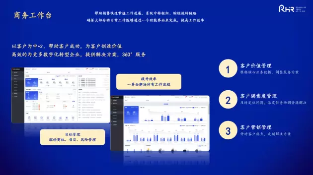借助商务工作台,前端销售的大部分的工作通过一个页面来完成,提高了工作效率的同时,实现对客户需求及目标的有效管理。通过商务工作台,商务可以实时地发现并定位问题,将问题通过系统反馈给后端管理,对问题进行及时响应和解决。同时通过商务工作台,管理者也可以有效地跟踪、管理客户的应收、在岗、净增、流失、回款等情况,将客户的经营价值可视化。
