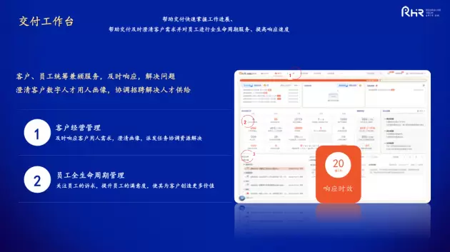 效率平台则体现了人瑞人才诸多岗位、角色线上线下的高效协同,通过系统流程自动化流转,实现数据实时共享,构建高效效率平台。
