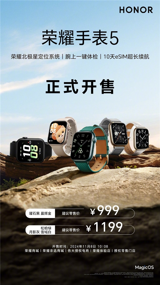 目前,荣耀手表5已在荣耀商城、各大授权电商、授权零售门店等全渠道发售中,售价999元起,现在在京东购买还可享受售价15%的数码换新补贴,有需求的用户可以抓紧时间选购。