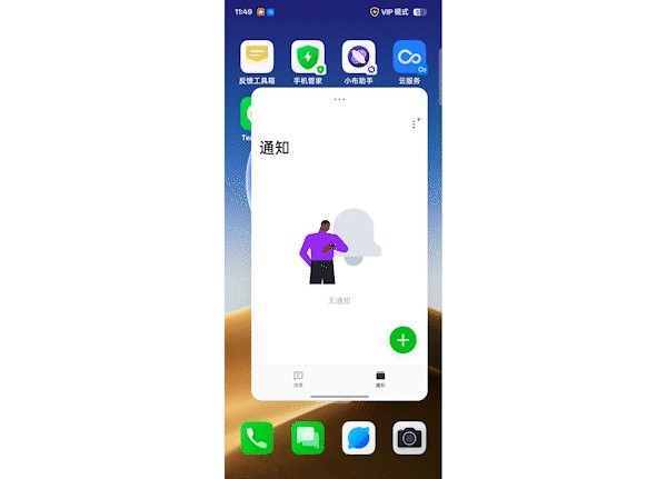 如果再将滑动操作转到手机的通知栏又会发生什么呢?当通知栏有大量消息时,上下滑动同样具有惯性效果,并且各种通知框在滑动到极限触底时,均会被拉伸再回弹,宛如一根弹簧一般,符合直觉。