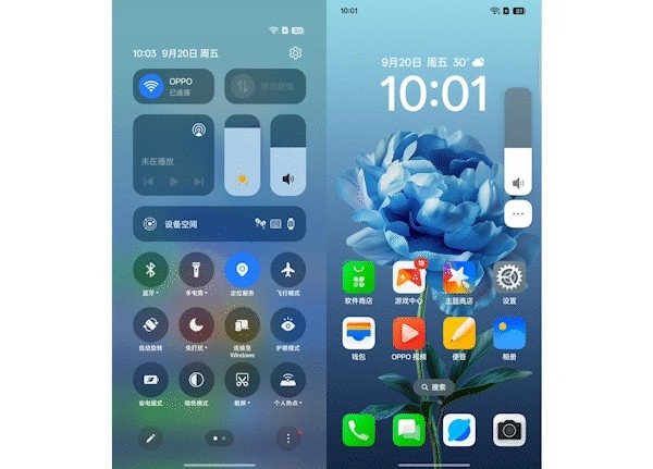 这类极限触底的拉伸回弹效果,也体现在系统的各个角落,例如桌面音量条、控制中心亮度条、音量条等均有展现,当然这也跟iOS的动效似乎如出一辙,Find X8系列被称之为OPhone不是没有原因的。