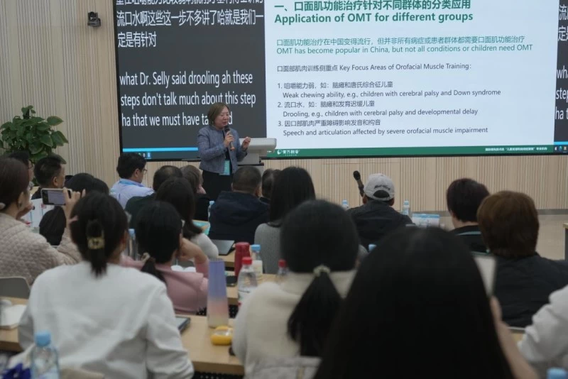 东方启音的执行副总裁崔广利女士对口面肌功能治疗相关主题进行了细致分析。她重点阐述了口面肌功能治疗针对不同群体的分类应用,指出虽然口面肌功能治疗在中国逐渐流行,但并非适用于所有病症或患者群体,像咀嚼能力弱的脑瘫和唐氏综合征儿童、流口水的脑瘫和发育迟缓儿童,以及因口部肌肉严重障碍影响发音和构音的患者是其适用对象。