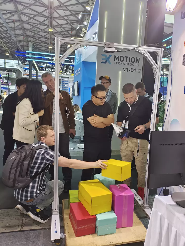 展会现场,洛微科技的展位人头攒动,前来咨询和体验产品的观众络绎不绝,最新推出的3D相机DM更是以其高性能优势赢得了现场观众的一致认可。这款相机以ToF(Time of Flight,飞行时间)技术为核心,兼容ARM和X86计算平台,具备6TOPS的强大算力、50fps+的高帧率以及高精度HDR等卓越性能。它能够在复杂及动态环境中保持稳定的图像感知能力,为工业自动化生产线上的动态抓取、物流科技中的货物追踪、动态场景的流量计数及机器人应用等场景提供了更为高效精准的数据支持。