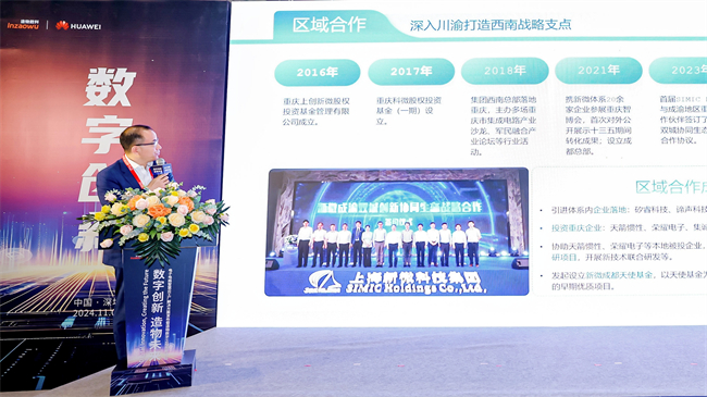温智敏先生作了有关上海新微科技集团在半导体领域科技成果转化经验的演讲,介绍了科研、中试服务、产业赋能相结合的三位一体模式,来实现创新链、资本链与产业链的融合发展,并且与大湾区上下游企业、政府、高校和科研机构等积极合作,共同打造半导体产业生态。