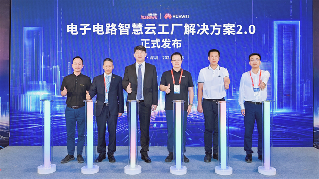 期间,造物数科董事长武守坤、华为云全球生态部总裁康宁、宝安区工信局副局长罗宇锋、CPCA副秘书长颜永洪、华为云深圳副总经理刘宇鹏、金百泽电子副总裁陈春上台启动,正式发布电子电路智慧云工厂解决方案2.0,见证“产业智慧互联+数字生态赋能”深度融合。