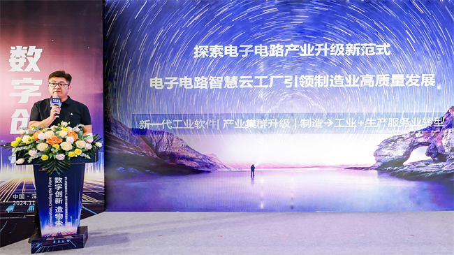 颜永洪先生代表CPCA致辞,从电子电路连接半导体,数字创新是推动产业转型和高质量发展的重要途径,造物数科与华为云的升级发布,将助力未来智慧工厂建设和电子电路产业升级,帮助产业上下游更加紧密,技术应用端更加广阔,行业竞争力更加强韧,希望在双方数字化策略下,深度探寻电子电路产业在新能源、汽车电子、航空航天等领域的最新应用,帮助企业科技创新和产业变革,为行业的新质生产力和可持续发展贡献智慧力量。