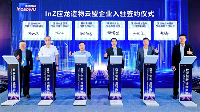 在行业伙伴的共同见证下,造物数科与精焯电路举行战略合作伙伴签约仪式,与金百泽电子、精焯电路、纬德电路、众信电路、福智创联、众一贸泰、诚和迅、鼎业电子、鼎新电路、凌航达、兆红电子等多个企业举行云盟企业入驻签约仪式,加入InZ应龙造物平台实现共享、协同、共赢!