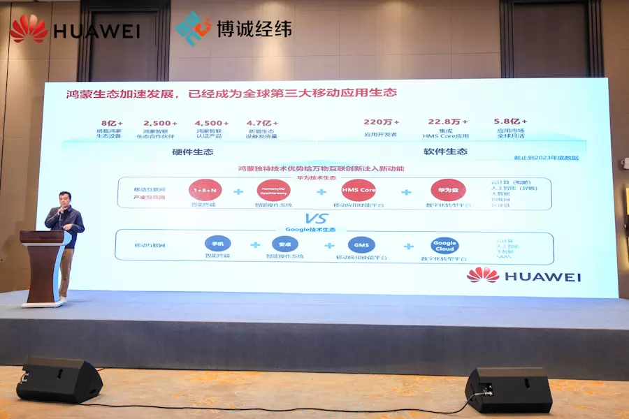 多位行业专家从产业数智创新的维度深入解读全国中小企业数字化转型的趋势、实施路径和蓝图。博诚经纬集团资深顾问副总裁于加林、鲁东大学信息与电气工程学院教授苏庆堂、华为鸿蒙开发者中心专家胡宇分别以《加速企业数字化飞跃,赋能产业转型升级》、《智改数转中的数字版权保护策略与实践分享》、《国产信创破解数字难题,鸿蒙生态赋能千行百业》为主题做了精彩分享,深入剖析当前企业数字化转型的紧迫性与重要性。