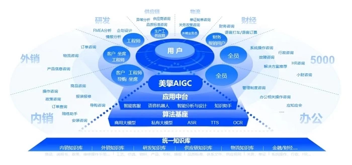 而在客服领域,AIGC通过算法模型对内部知识进行解析、训练、推理,拉通事业部、导购、工程师、客户,形成ToB向ToC、“知识问答”向“场景交互”的演变,应用场景包括企微、电商、4000等各类客服,以“一个美的”共同服务用户!目前准确率80%,相当1年工作经验的运营人员、工程师,极大地提升企业对市场趋势动态的掌控力,提升客户服务水平。