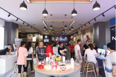 而从开业当天火爆的场面来看,单是陕西移动与京东的联合招牌,便吸引来不少路过的顾客驻足围观,而店内满满的“黑科技“也让顾客体验得不亦乐乎,店外等候体验的顾客更是排起了长龙,为开业带来了一道别样的风景线。随后,记者走进了这家人头攒动的京东专卖店,试图寻找它火爆背后的秘密。