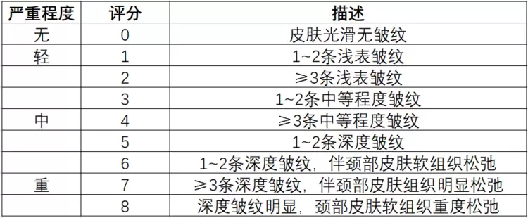 美图宜肤9个不同的等级评估颈部皱纹标准