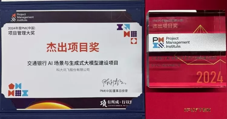 近日,2024年PMI项目管理大会在广州举办,会上揭晓了2024年PMI(中国)项目管理大奖。凭借在交通银行AI场景与生成式大模型建设项目中的优秀表现,科大讯飞获得2024年PMI(中国)项目管理大奖——杰出项目奖。
