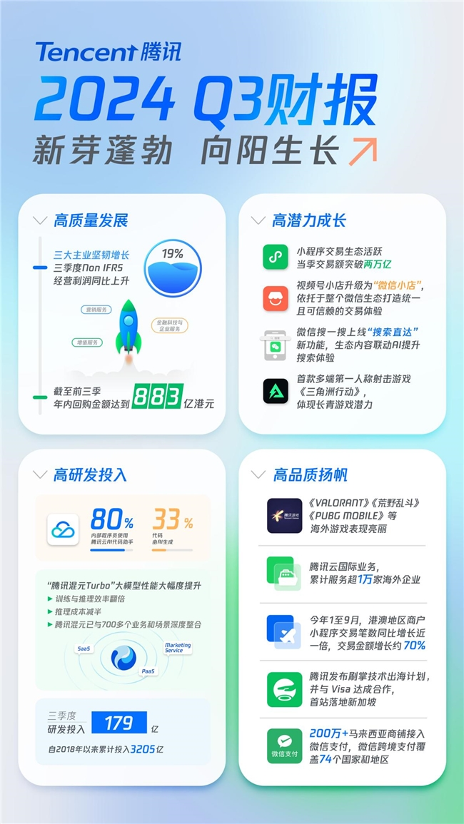 数据显示,三季度腾讯研发投入达到179亿元,同比增长近9%。自2018年至今研发投入超过3204亿元。