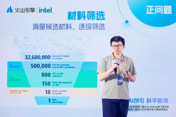 火山引擎 AI for Science 研发专家牟贞亮阐述了 AI 如何引领材料科学研究范式的转变,并展示了利用火山引擎的计算资源开展高通量计算,以加速新材料的设计与优化进程。他特别分析了 BAMBOO 在电解液与电极材料设计中的应用案例,并探讨了其对未来材料研发领域的深远影响。