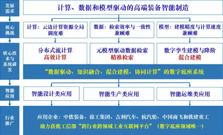 数字底座是智能制造的“中枢”和“大脑”,直接决定高端装备设计、制造和运维的质量和效率。当前,高端装备智能制造领域普遍存在“软件系统集成难、设计协同效率低、生产制造调度难、运维服务质量差”的痛点,严重制约了我国高端装备的数智化设计、制造、运维及国际竞争力,亟需研发统一、开放和协同的高端装备智能制造数字底座系统,并基于数字底座研发系列工业智能应用,推动高端装备智能制造高质量发展。