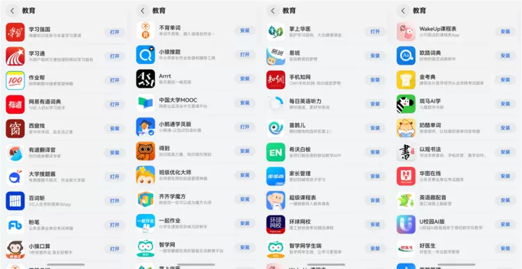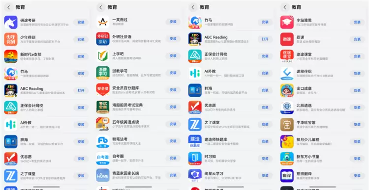 最近身边升级纯血鸿蒙的朋友越来越多了,大家每天都在关注应用市场,寻找各种好用好玩的新App。今天我在HarmonyOS NEXT应用市场里看了下教育类应用,发现我们常用的学习强国、得到、粉笔、百词斩,还有一些正在考证的朋友们用的网校和题库等App,都已经可以下载使用了,覆盖了学外语、考研、资格证书、职业技能、知识付费、传统文化、党建等等类型。可以说,无论是打工人业余充电还是学历提升、职业教育,都可以在HarmonyOS NEXT应用市场找到好用的App,事半功倍地让你“悄悄变强大”。