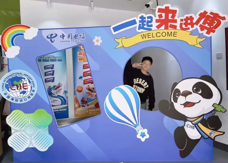 在青浦振泾路营业厅,上海电信还精心设置了“一起来进博”主题展览,以独特的创意与丰富的展示内容,成为热门打卡地。周末,经常有家长带着孩子特地先来营业厅拍照打卡后再前往展会现场。