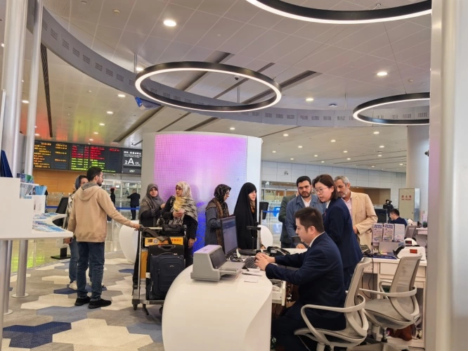 展馆外,浦东机场T2航站楼电信服务点更是24小时不间断提供服务。展会前夕,来自伊朗的代表团刚下飞机,就在电信服务点得到了关于游玩和citywalk的推荐,电信服务人员还为他们提供了“进博会交通出行十问十答”双语资料。伊朗代表团表示一落地就从电信服务点感受到了上海这座城市的热情和魅力,特地手写了一封感谢信表示感谢。