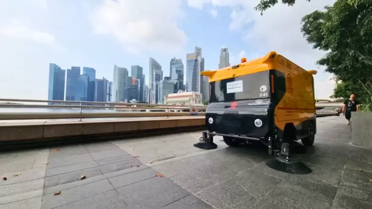(文远环卫车S6、无人扫路机S1在新加坡滨海湾进行试范运营)