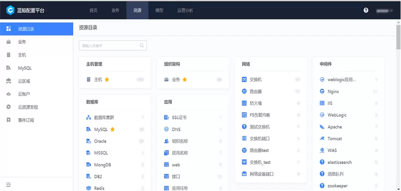 场景价值:纳管包括主机、数据库、组织架构、应用、网络、中间件等多种类型的资源,实现资源的统一管理。