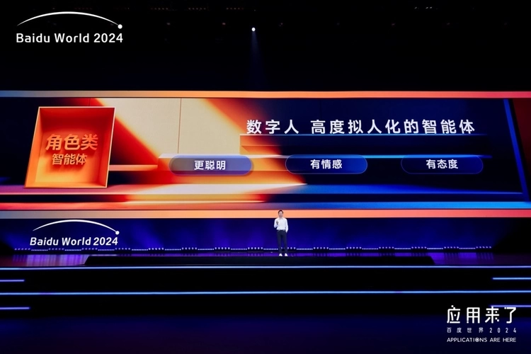 在近日举办的百度世界2024大会上,李彦宏指出智能体是AI应用的最主流形态,并预测其将迎来爆发点。他以数字人为例,阐述了角色类智能体的广泛应用。“在大模型加持下,数字人逐渐变成了高度拟人化的智能体,更聪明、有情感、有态度。”在他看来,真人与虚拟人的交互,将创造巨大的产业价值和社会价值。