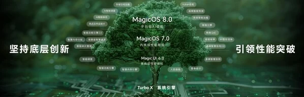 荣耀MagicOS 7.0 首次发布了Turbo X 系统引擎,通过内核级底层性能的增强,实现了领先业界的持久流畅体验,连续使用 60 个月不卡顿;MagicOS 8.0 通过平台级 AI 加持,实现了同级芯片的越级体验,10 分钟内的应用智能保活率达到了97.3%,在游戏与视频通话场景下的高帧率和抗抖动性也处于业界领先水平。在 MagicOS 9.0,荣耀更进一步,通过 AI 重构了图形引擎和 OS Turbo X 引擎,同时结合人因设计,带来轻快自由的性能体验和松弛愉悦的人因动效。
