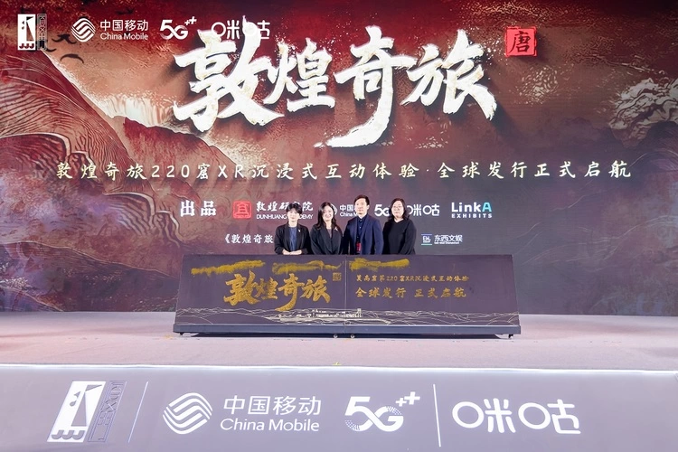 本次论坛现场,由敦煌研究院、咪咕公司及上海零卡文化联合出品的XR沉浸式互动体验《敦煌奇旅》正式亮相。该项目以广受欢迎的多媒体综合展《敦煌奇境——传奇洞窟220窟之谜》为蓝本,进一步展现第220窟壁画中的乐舞图像及其背后供养人的故事。作为国内首个聚焦第220窟的多媒体展览的延续之作,《敦煌奇旅》在零卡文化对敦煌题材的创造性探索基础上,通过XR技术赋能,融合沉浸式视听效果与趣味互动,带领观众以全新的方式感受敦煌文化的独特魅力。