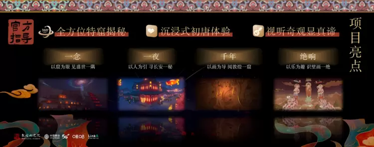 这是一份现实中参观不到的溯源体验,1.0线上发行版体验时长约30分钟,涵盖“一念”、“一夜”、“千年”及“绝响”四大精彩篇章,观众将扮演洞窟守护者的角色,踏上帮助翟通寻找第220窟壁画粉本的冒险之旅。在旅途中,不仅可360°自由漫游于大唐盛世,领略长安盛景,还能深入第220窟与壁画互动,触发丰富的知识点,并解锁唐韵音律的惊喜彩蛋。《敦煌奇旅》通过高精度画面、富有创意的故事线、易于操作的互动设计,生动展现了第220窟壁画和大唐乐舞景象。让观众在享受视听盛宴的同时,深入感受唐代长安与敦煌两地的历史渊源,以及敦煌作为文化交汇地的重要意义。