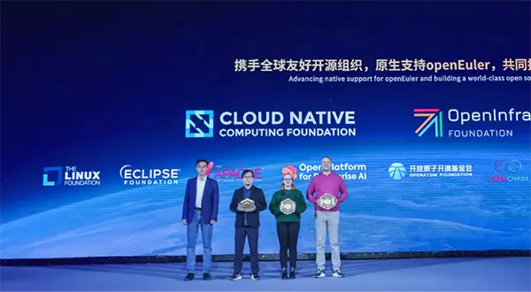 去年,openEuler携手7大全球开源组织开启全球化新篇章,本次会上,openEuler宣布与OpenInfra、CNCF、openHPC三家海外头部开源基金会建立深入合作,将原生支持openEuler项目,进一步加速openEuler全球化进程。