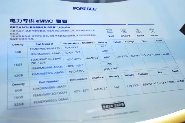当然,中国存储芯片公司江波龙也向市场展示了转型的决心和能力,推出了多款高性能存储产品。例如,在电力行业,江波龙特别设计了FORESEE电力专用eMMC,这款产品具有高速度、大容量、低功耗、抗抖动的特点,专为电力设备的数据采集、处理和存储需求量身打造。FORESEE电力专用eMMC提供8GB至32GB的容量选择,并支持两种宽温范围:-40℃85℃以及-40℃105℃。经过严格的高低温测试和多项可靠性验证,产品展现出卓越的抗冲击能力,确保在极端温差下也能稳定运行。这一产品已在继电保护装置、集中器、融合终端、电力仪表、电网系统等多种应用场景中得到了广泛应用。