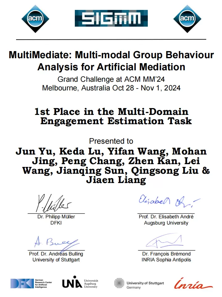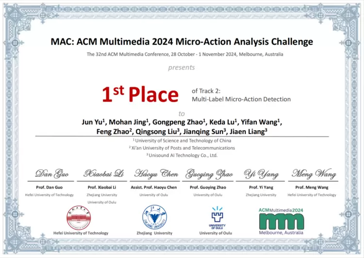 近日,第32届ACM国际多媒体会议在澳大利亚墨尔本圆满落幕。由中国科学技术大学自动化系於俊老师带队的中国科学技术大学与云知声共同组建的USTC-IAT-United团队在不同挑战赛道上累计荣获5项冠军、2项亚军,技术实力再获国际顶会认可。