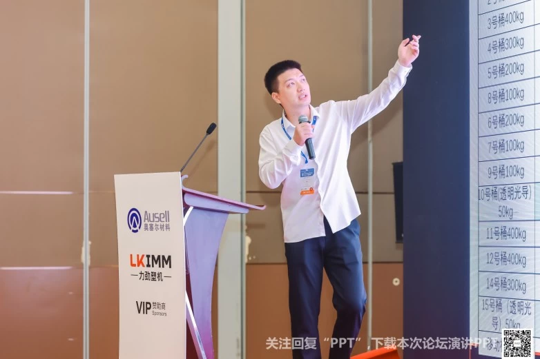 力劲塑机智造有限公司工程师熊少章介绍了汽车保险杠注塑成型及自动化解决方案。力劲FORZA-III两板式注塑机集成磁力模板、机器人自动化系统,实现换模自动化、信息化、自动化生产,有效提升生产效率,实现产品重量重复精度≤ 0.3%。