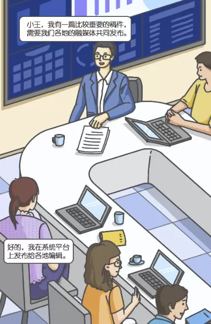 在某报社的融媒体中心内,一位记者有一篇重要稿件要发送给各地的融媒体编辑共同发布。