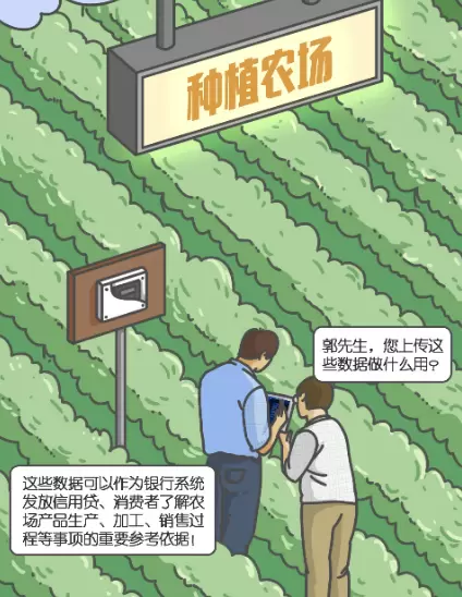 在某种植农场内,郭先生正在上传农作物数据,这些数据可以作为银行系统发放信用贷、消费者了解农场产品生产、加工、销售过程等事项的重要参考依据。