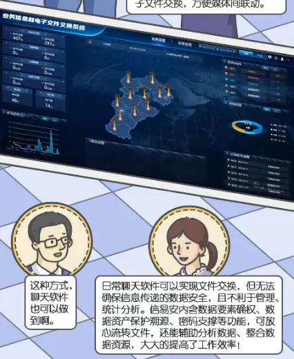 半小时后,各地纷纷发布稿件,达到了不错的舆论效果。编辑解释,之所以能够做到不同地区、不同系统同时接收文件,是因为系统内嵌了信易安可信交换系统,可打通跨地域、跨层级的底层“通道”,把信息同时发给各地融媒体了。各地还可以在系统上进行电子文件交换,方便媒体间联动。